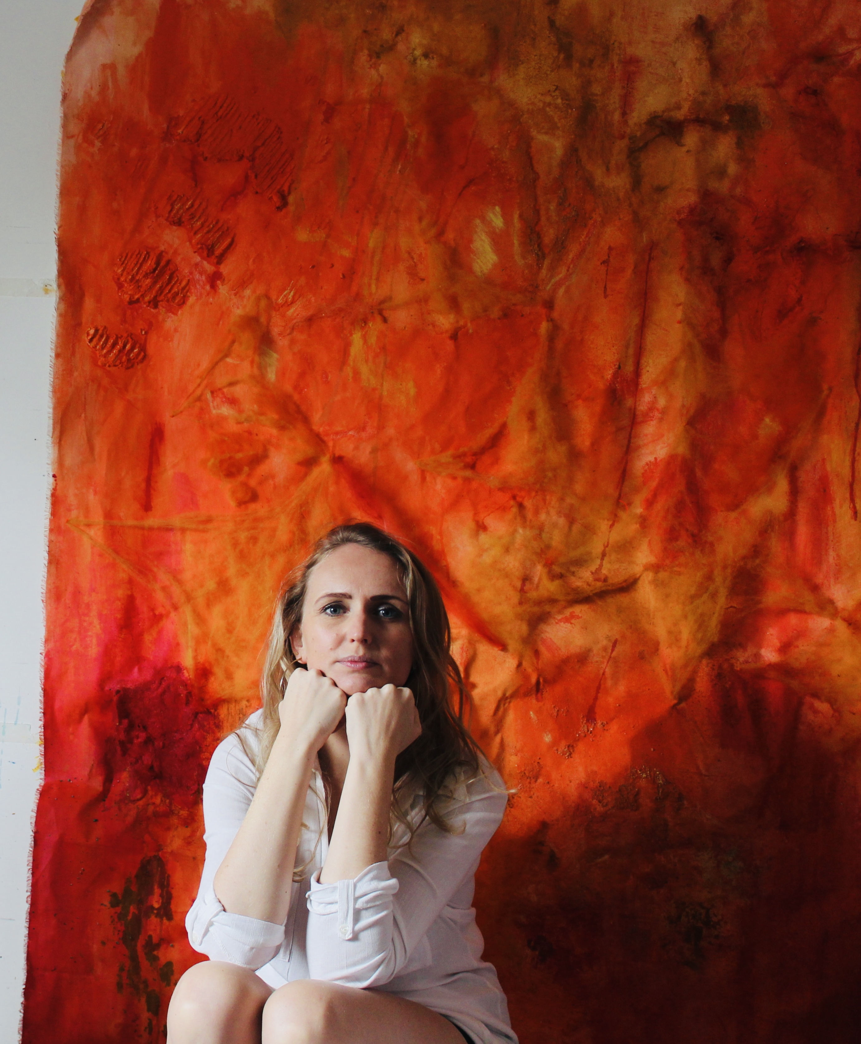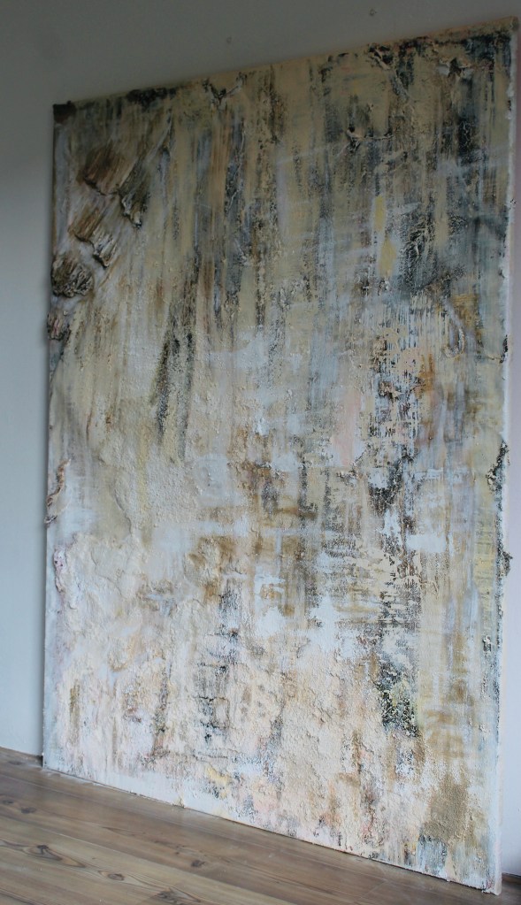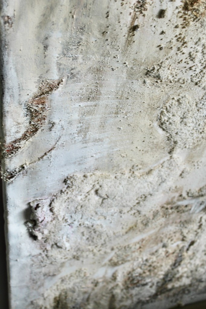 I would describe my style as warm, a feeling in touch with nature, with a variety of structures and materials. On the one hand the painting gives energy, but it is also calm to surround yourself with. It surprises me each time to notice how in all the paintings everything comes together. In some of my paintings, the structures are inspired by volcanoes. In others by the coral reef. I therefore find it special that I can imitate a coral reef with inspiration and structures from the woods and flower fields, so you can see that everything in this world is connected. I want people to actually feel the softness and beauty of nature through my paintings; with their eyes or even by actually touching the painting. The paintings have that appeal of touching, because of the materials and structures. So I would describe my paintings as abstract, warm and natural. A piece of abstract art, to bring nature into your home.